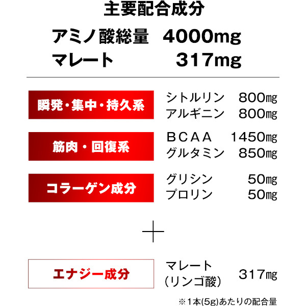 ◆瞬発・集中・持久・燃焼・回復・ハリツヤ系アミノ酸8種類4000mg配合!